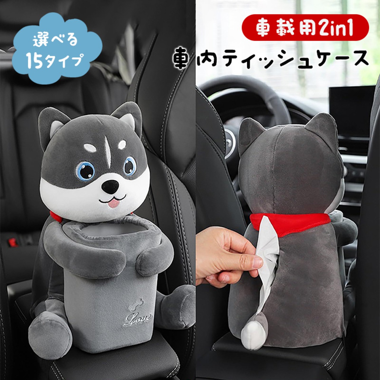 選べる15種類 2in1 車載用 ティッシュケース ゴミ箱 車 ゴミ箱 カー用品 車内 収納ボックス