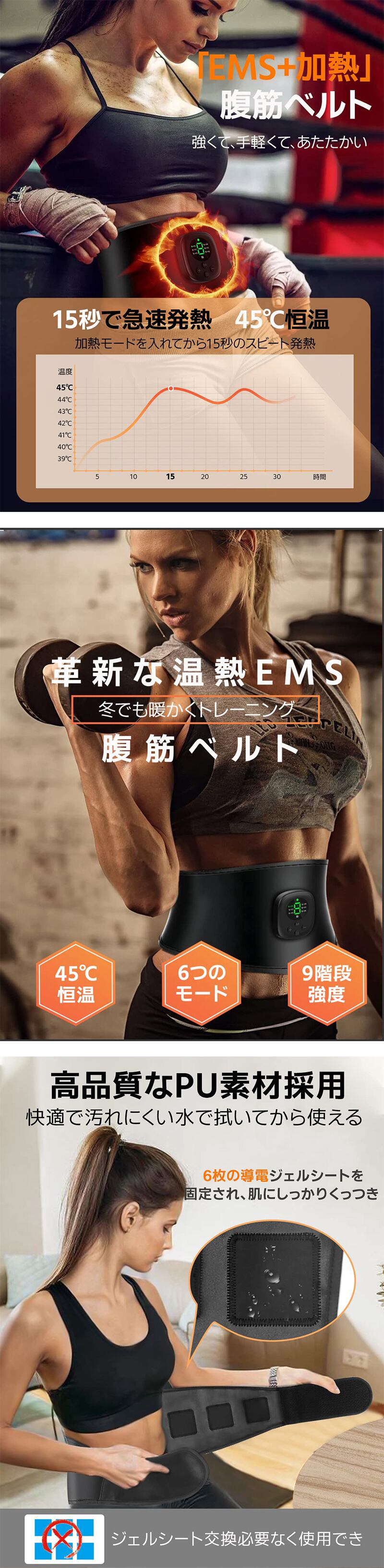 ジェルシート不要 腹筋を集中的に鍛え 引き締まったお腹周りへ ジョギングなどの有酸素運動を取り入れながら使用することでシェイプアップにも効果的 液晶表示 EMS&温熱