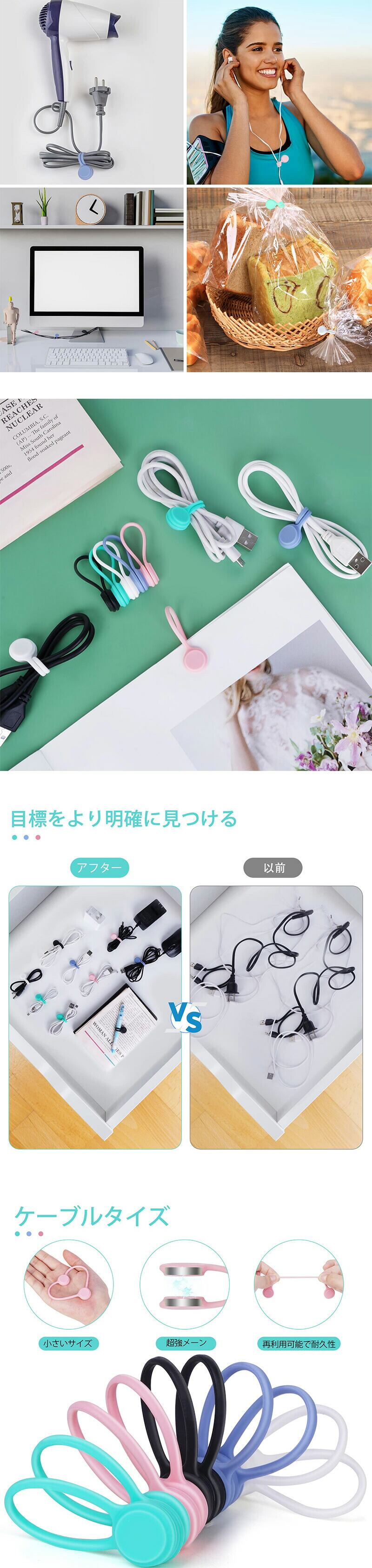 10個入 5色 ケーブルクリップ クリップ マグネットクリップ コードクリップ ホルダー コードフック 収納 巻き取り 配線まとめ イヤホン USBケーブル コード整理 多機能 再利用可能