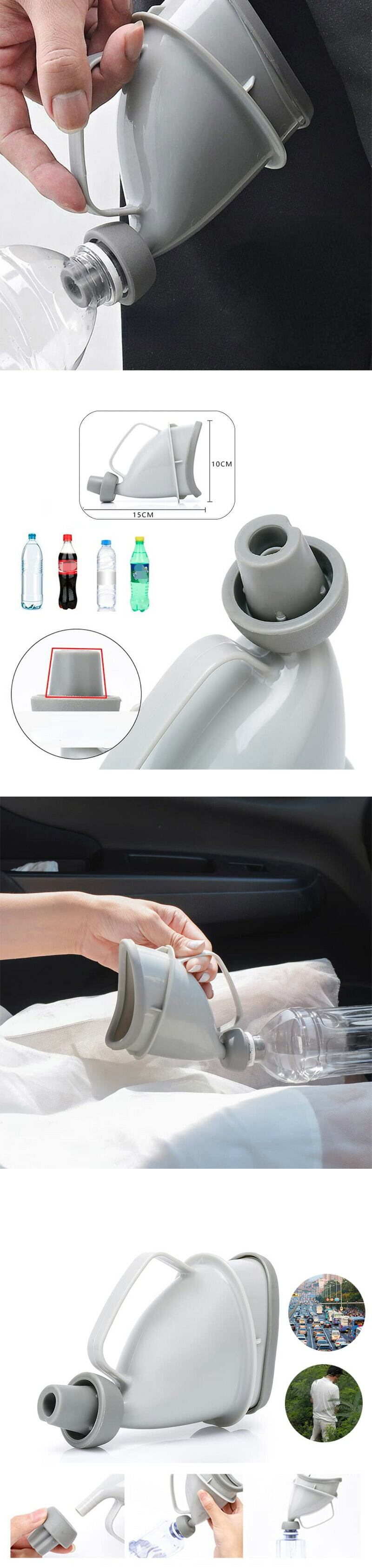【商品詳細】サイズ:15cm×10.5cm、重量:110g、素材:ポリプロピレン、色:グレー、パッケージ内容:本体×2個商品詳細【特徴】 【渋滞中の車内で】お子様連れのドライブ中に渋滞でトイレに行けない中、そんな時にペットボトルにジョイントして使用する非常用トイレです。cので車用に携帯しておくのがおすすめです。