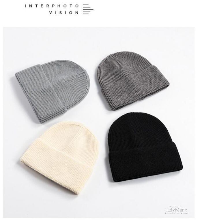 耳まですっぽりのニット帽・シンプル無地でシーズンレス・やわらかいリブニット・よく伸びる伸縮性と暖かさ・マスト防寒アイテム。