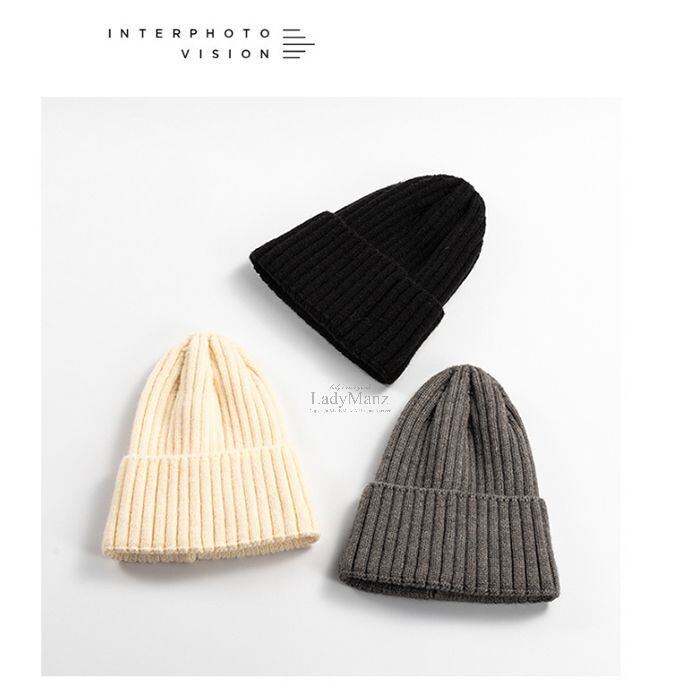耳まですっぽりのニット帽・シンプル無地でシーズンレス・やわらかいリブニット・よく伸びる伸縮性と暖かさ・マスト防寒アイテム。