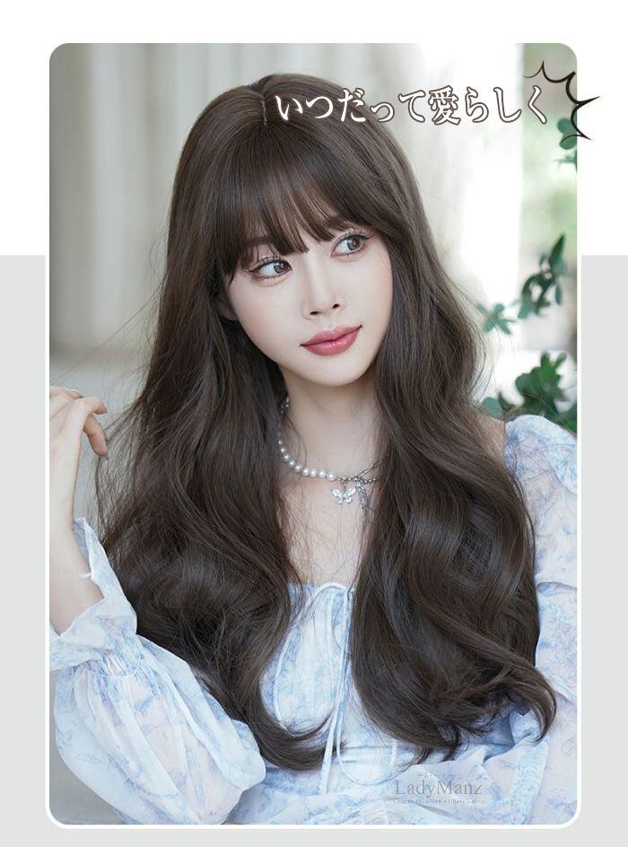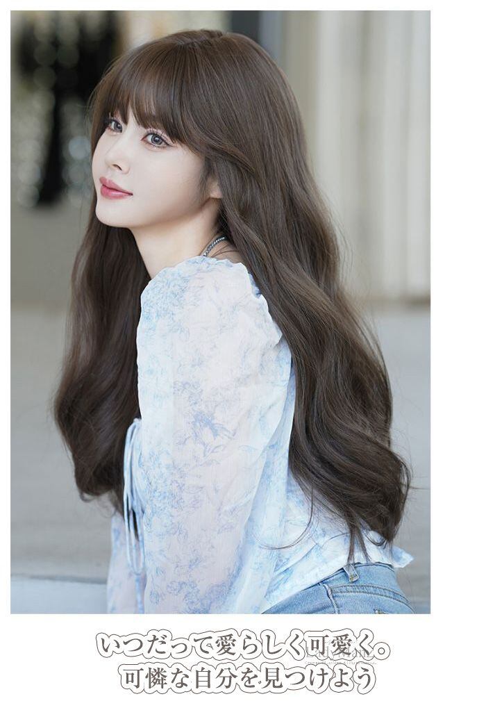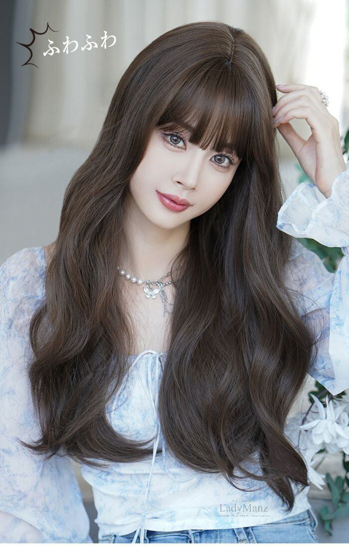 ウェーブ ロングウィッグ ダークブラウン ぱっつん前髪 韓国風 かわいい 波巻き 清楚系 自然 ゆる巻き 大人かわいい 大人気 黒茶色 フルウィッグ レディース ロング カール 長さ62cm 人工頭皮