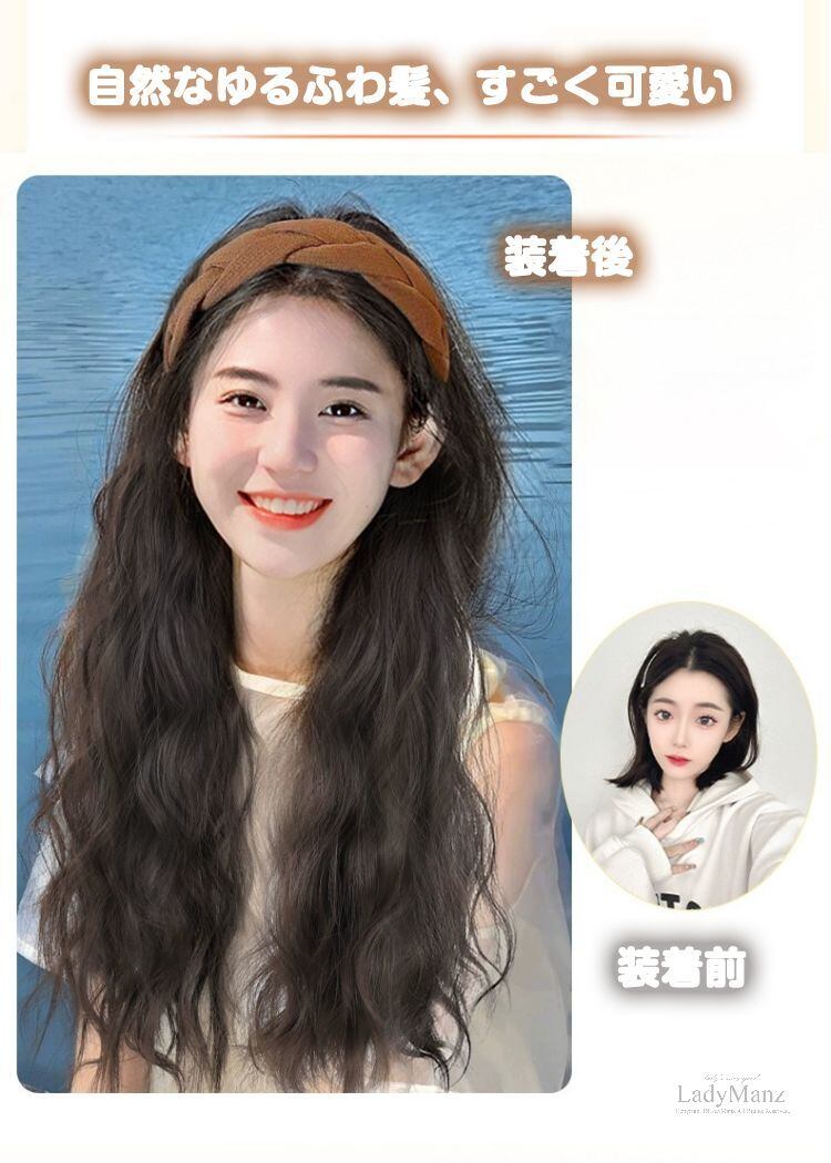 取り外し可能 カチューシャウィッグ 部ウィッグ つけ毛 ハーフウィッグ 続々入荷中Key0: オレンジ ベージュ vertical-key: カール1 ストレート カール2