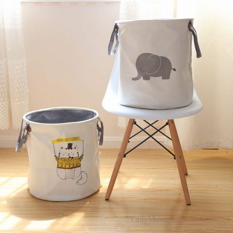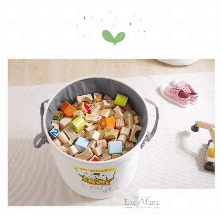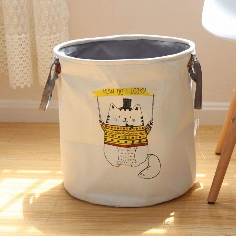 しっかりしたコットン生地に可愛いネコちゃんがプリントされたランドリーバスケットです .*゜