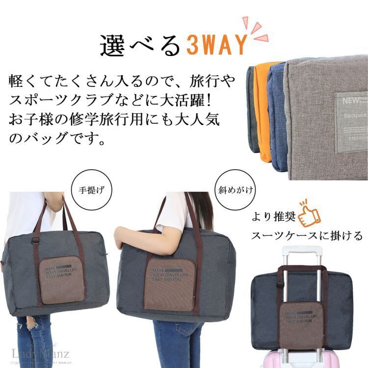 旅行におすすめの大容量 超便利な3WAバッグ 男女兼用バッグ ボストンバッグ 豊富horizontal-key: オレンジ グレー ネイビー ブラック