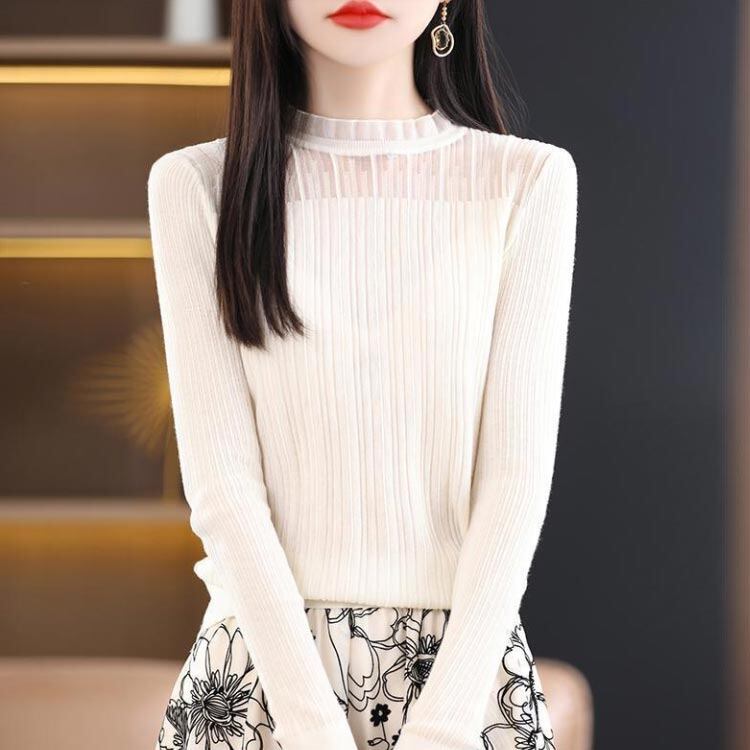 レディース インナー フリルネック ハイネック 総レースブラウス インナー シャツ 花柄 レース トップス レース 長袖 黒 通勤 立ち襟 秋冬 ブラウス 肌着 韓国ファッション 春夏 OL トップス