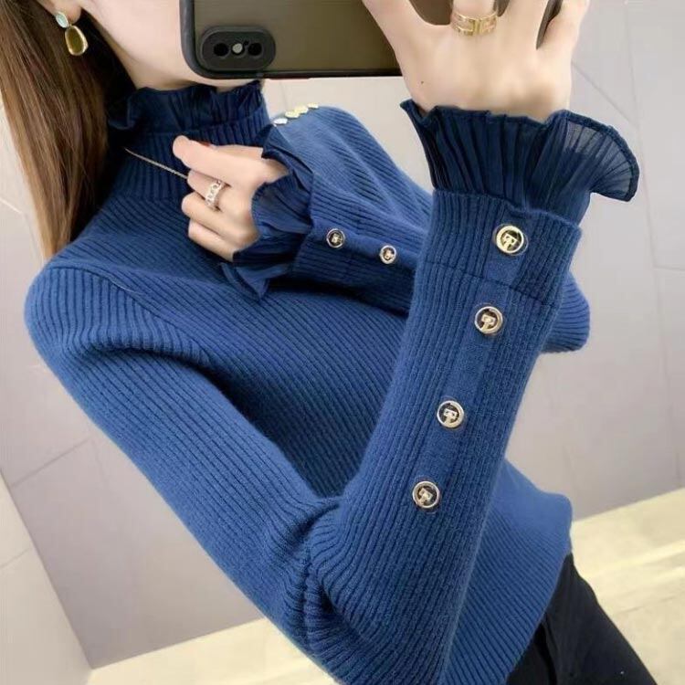 レディース 春 フリルセーター 秋冬 トップス Tシャツ カットソー 特集カラー: ブラウン ブラック ブルー ベージュ レッド グリーン サイズ: S M L XL 2XL
