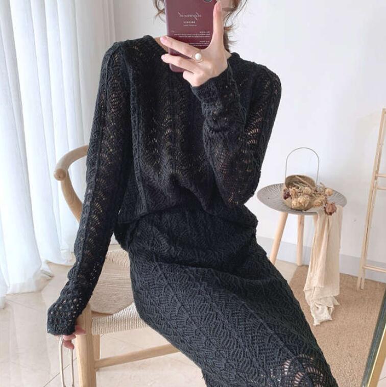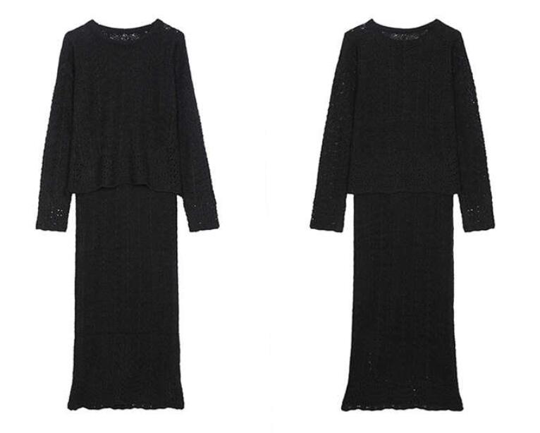 Knit set up 大人かわいい雰レディースファッション 人気Key0: ブラック アイボリー