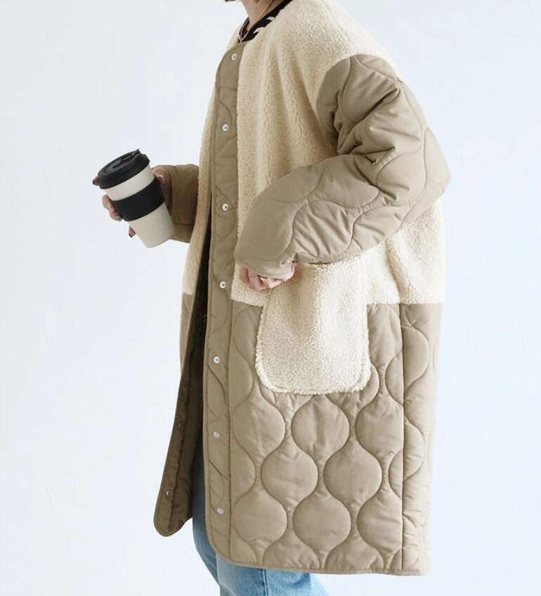 異素材切り替えの魔法コート ロングコート アウター レディース コート 冬 中綿 キルティングコート ミセス 大きいサイズ 防寒 あったか おしゃれ 可愛い 体型カバー 30代 40代 50代