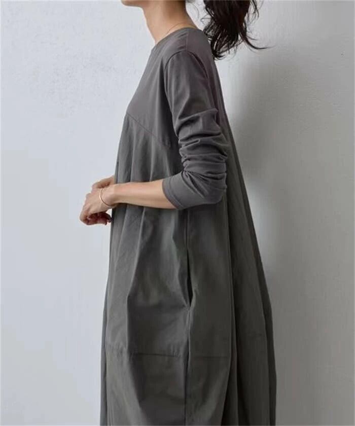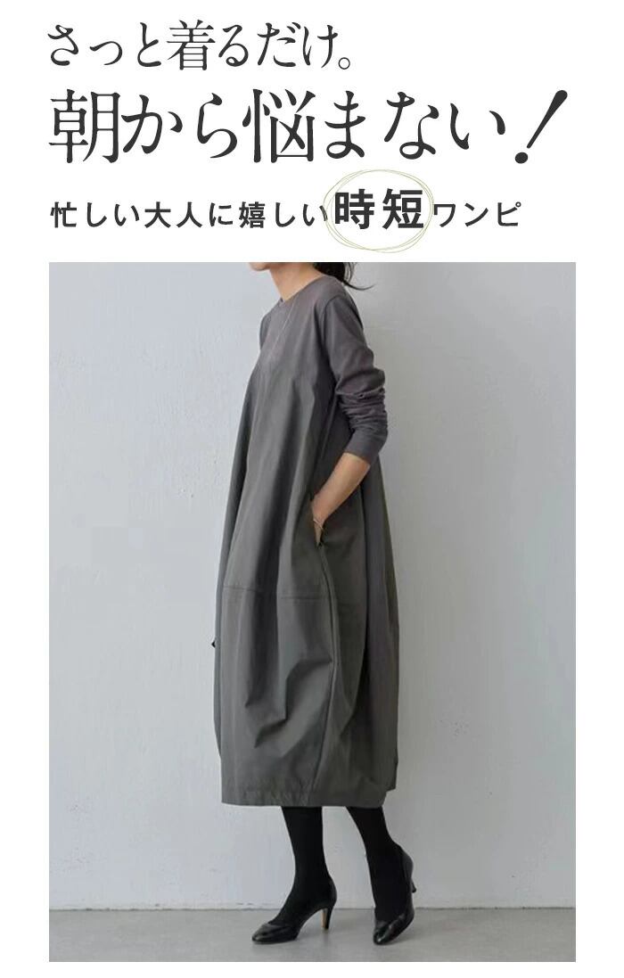 キーワード ワンピース 秋 春 夏 きれいめ 長袖 ロングワンピース 切り替えワンピース カジュアル かわいい 大人 ロング丈 マキシ丈 リラックス コクーンスカート 無地 大きめ 大きいサイズ 着痩せ おしゃれ 体型カバー 体型隠し リゾート シンプル