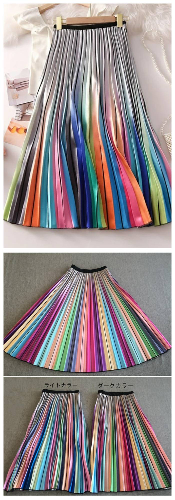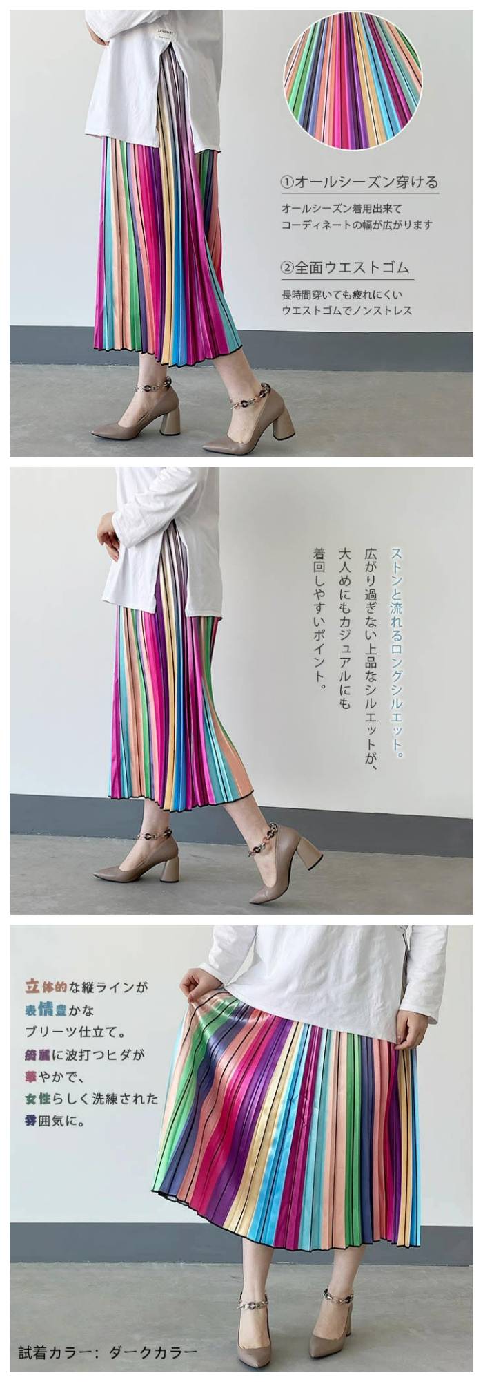 キーワード 即納 スカート プリーツ スカート ロング ロングスカート プリーツスカート フレアスカート ボトムス 虹色 スカート スカート テーマパーク レディース フレア ロング丈 ミモレ丈 春夏 春 夏 ウエストゴム シンプル おしゃれ トレンド 虹色 通勤 OL メール便可。
