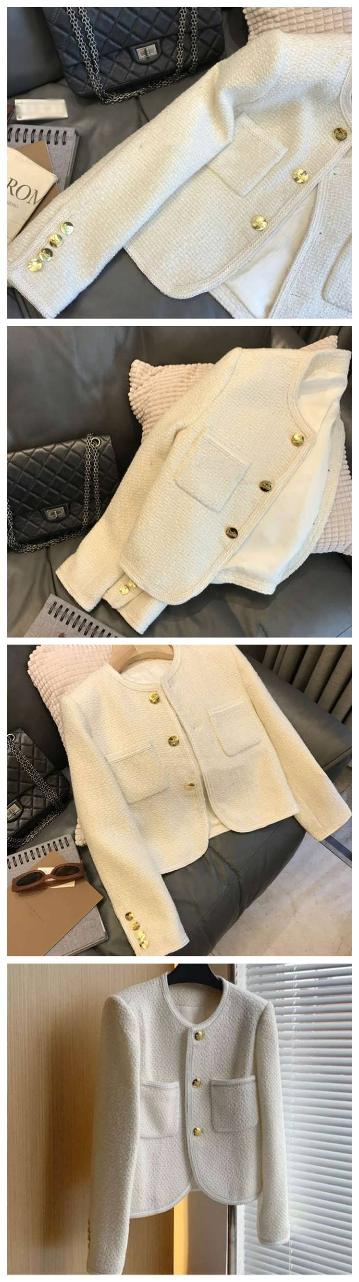 Tweed jacket 春秋のオトナレディースファッション お得なセールKey0: S M L XL Key1: ホワイト ブラック