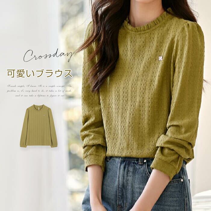 ブラウス レディース ハイネック シャツ 春 夏 無地 トップス 長袖 シャツ フェミニン 着回し シンプル