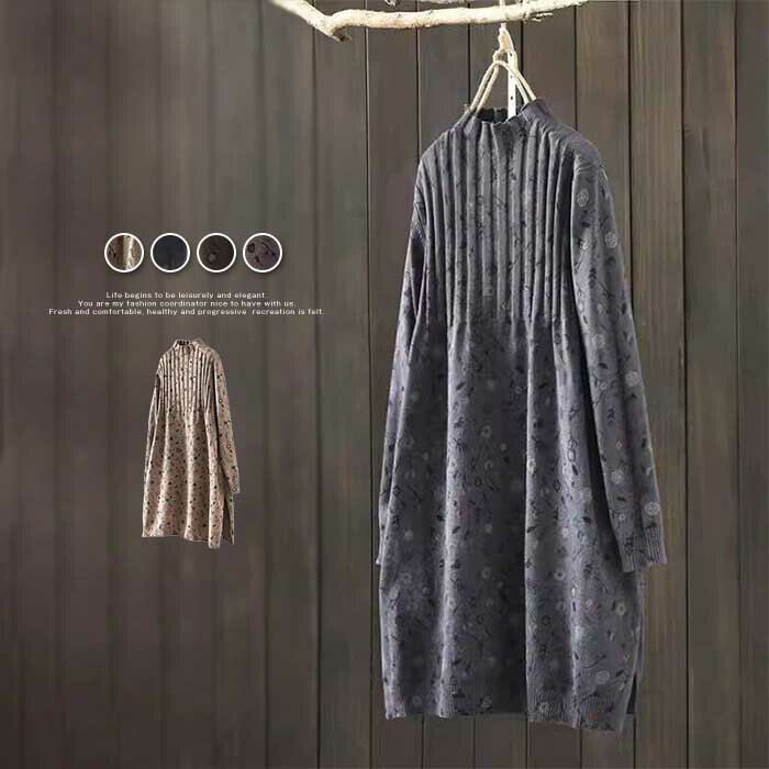 ニットワンピース ワンピース ニットチュニック レディース チュニック 長袖 セーター トップス タートルネック 防寒 リブニット 秋冬 ニットソー 膝丈 膝上 上品 ロングニット オフィス 長袖 春秋 花柄 30代 40代 50代