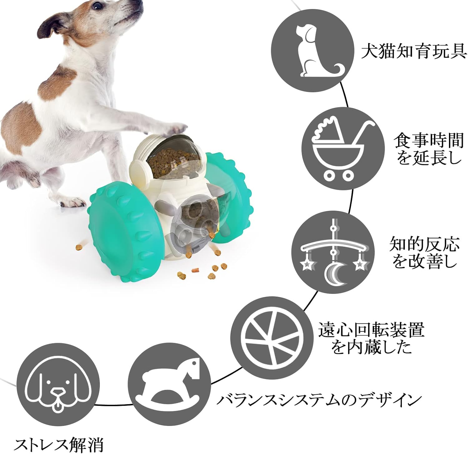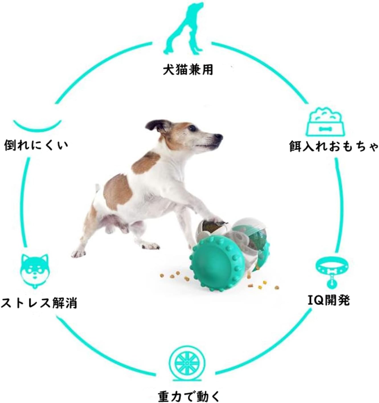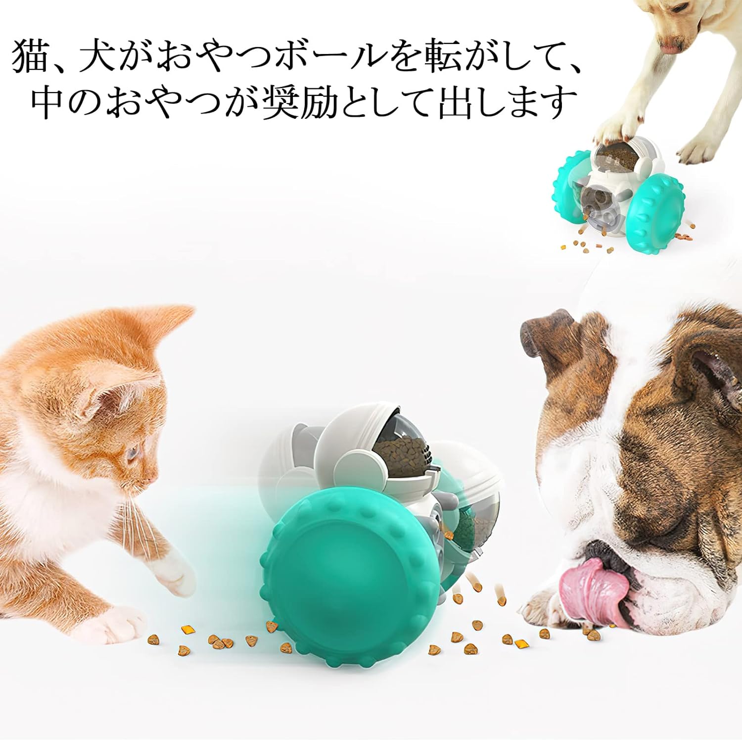 【給餌おもちゃ】半透明設計で、おやつの香りを漂う穴により、おやつが見えて味も嗅ぎます。猫、犬がおやつボールを転がして、中のおやつが奨励として出します、食べ過ぎや早食いを防止します。
