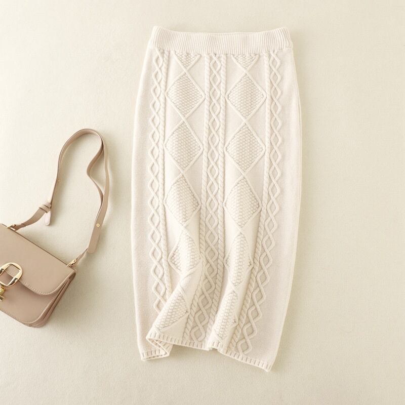 ロングスカート レディース タイトスカート 秋冬 ハイウェスト ミモレスカート ロングスカート ケーブル編み 春秋冬 大人 厚手 ニットスカート 可愛い フェミニン きれいめ ストレッチ
