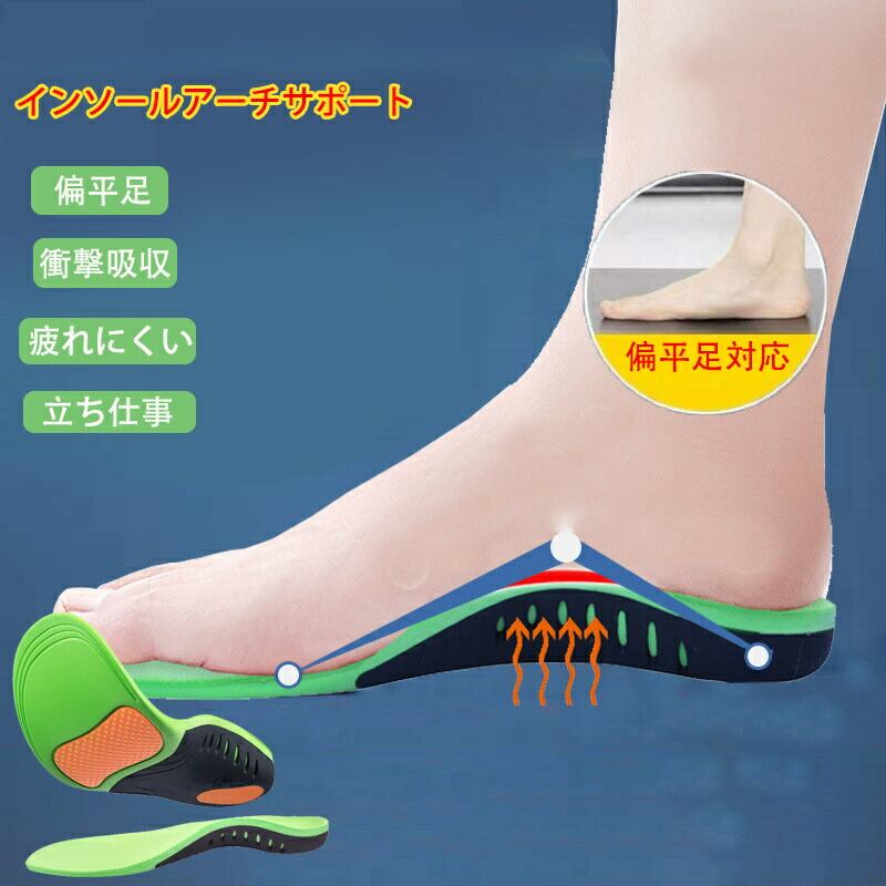 インソール アーチサポート 偏平足 土踏まず 衝撃吸収 反発 中敷き 疲れにくい 立ち仕事 ゴルフ スニーカー スポーツ ランニング靴