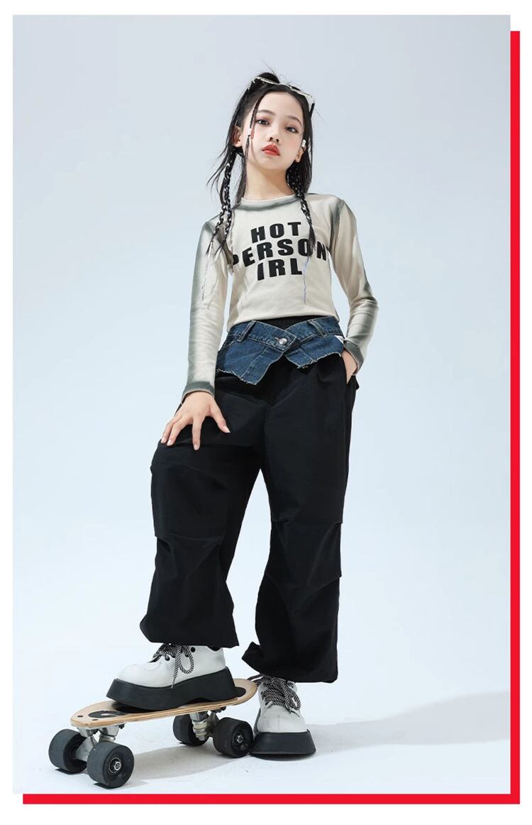 キッズダンス衣装 ダンス hiphop セットアップ K-POP へそ出し Y2K 長袖 カッコイイ ゆったり 普段着からダンス衣装まで様々なシーンで活躍