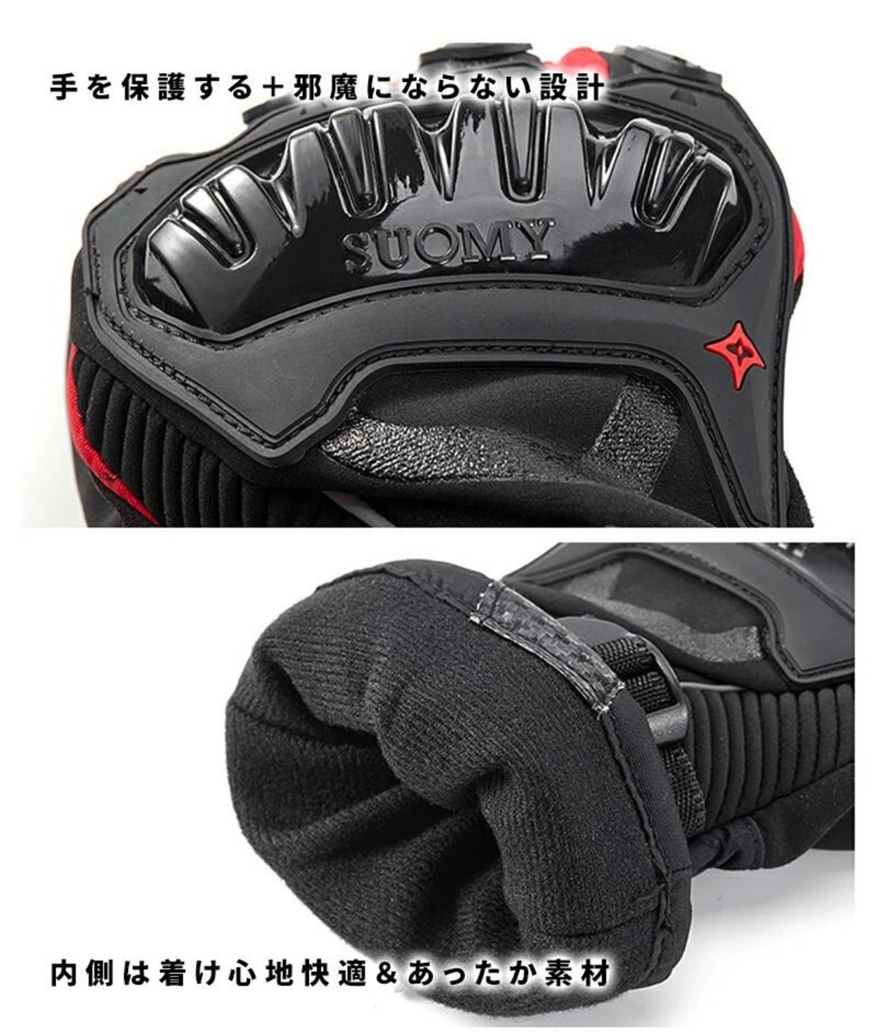 立体成型で握りやすさを確保しながらもしっかり手の甲を保護してくれるプロテクターを配置!