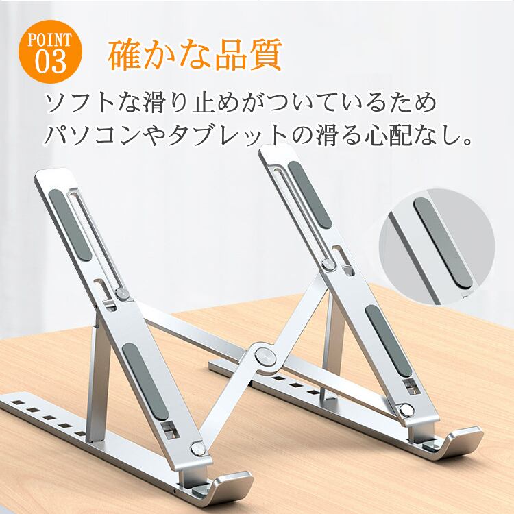 ノートパソコン スタンド PCスタンド 折りたたみ コンパクト 軽量 タブレット スマホ 本 高さ調節 冷却 アルミ 姿勢矯正 クリックポスト