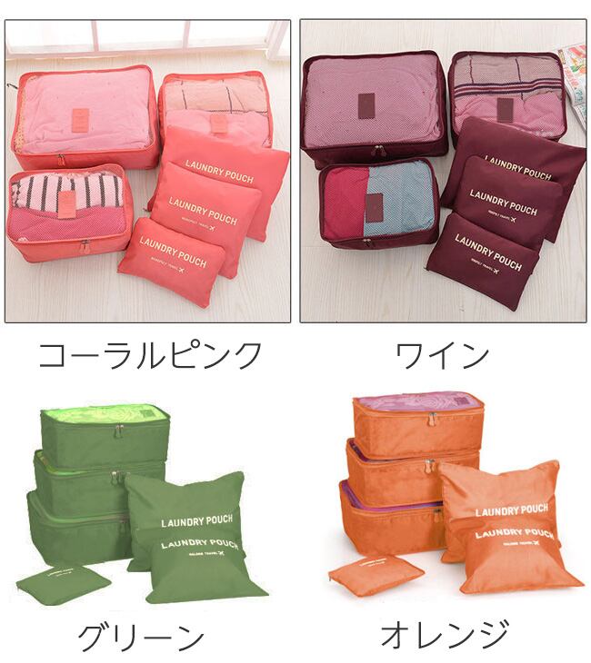 キャリーケース トラベルポーチ6点セッバッグ 男女兼用バッグ その他 豊富カラー: ネイビー グレー ブルー ピンク コーラルピンク ワイン グリーン オレンジ パープル ホットピンク
