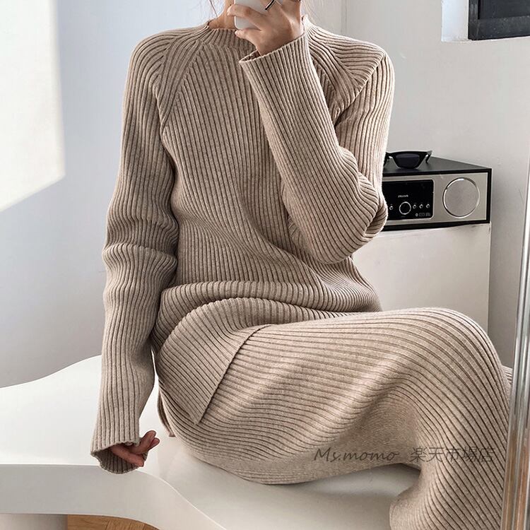 連携キーワード:ニットセットアップ レディース 40代 秋冬 長袖 ニットトップス ロングパンツ 無地セーターセットアップ オシャレカジュアル韓国風 着痩せ 上品 通勤
