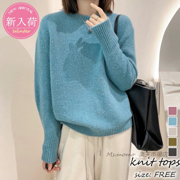連携キーワード:ニットトップス レディース 春秋冬 40代 長袖セーター 無地ニットソー キラキラ ショット丈セーター ゆったりプルオーバー オシャレ韓国風 大人ニットインナー 50代 30代