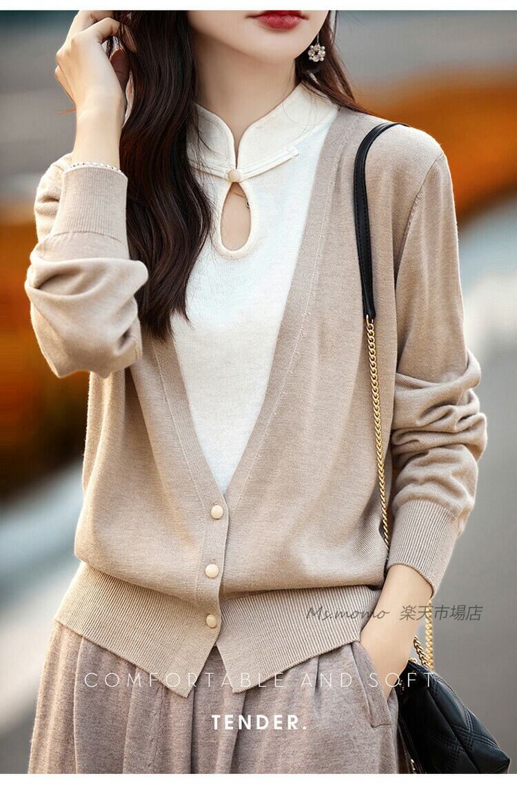 連携キーワード:ニットトップス レディース 春秋冬 40代 長袖ニットカーディガン 配色 ショット丈セーターフェイクレイヤード ゆったりプルオーバー オシャレ韓国風 大人ニットインナー 50代 30代