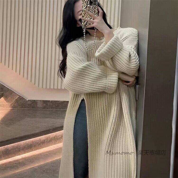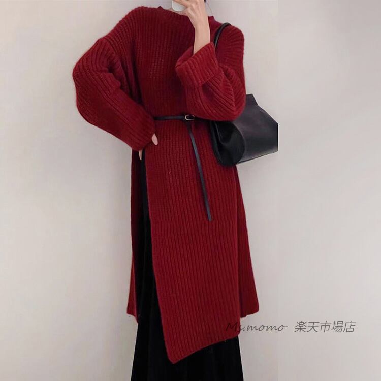連携キーワード:ニットトップス レディース 春秋冬 40代 長袖セーターワンピース 無地 スリット ロング丈セーター ゆったりプルオーバー オシャレ韓国風 大人ニッインナート 50代 30代
