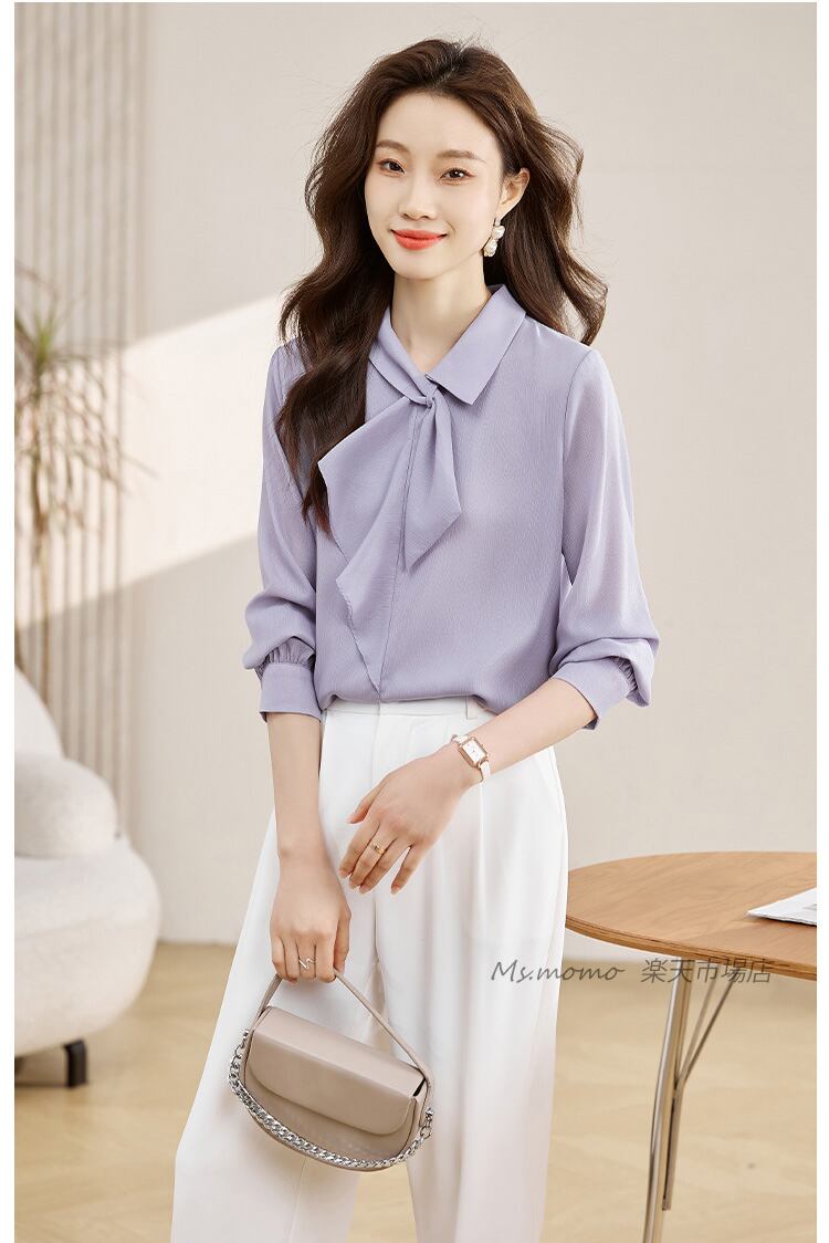 連携キーワード:ブラウス レディース 長袖ブラウス 春秋冬 オフィスブラウス リボンネック オシャレブラウス シフォントップス 韓国風 大人 通勤OL ゆったりシャツインナー 40代 30代 50代