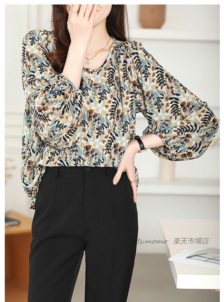 連携キーワード:ブラウス レディース 長袖ブラウス 春夏秋 オフィスブラウス 花柄 オシャレブラウス パフスリーブトップス 韓国風 大人 通勤OL ゆったりシャツインナー 40代 30代 50代
