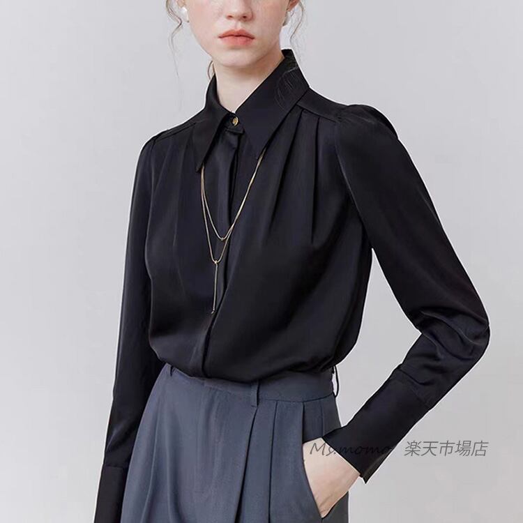 連携キーワード:ブラウス レディース 長袖ブラウス 春秋冬 オフィスブラウス 黒 オシャレブラウス 折り襟トップス 韓国風 大人 通勤OL ゆったりシャツインナー 40代 30代 50代