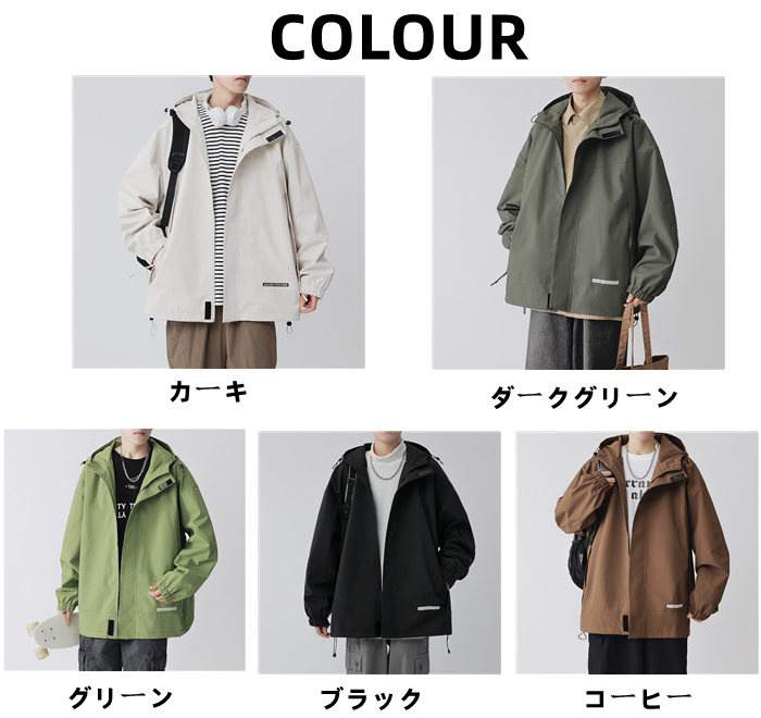 商品名:ウィンドブレーカー ジャケット メンズ アウトドア アウター コート マウンテンパーカー ジップジャケット フード付き 春 秋 長袖 ジップアップ 前開き トップス 無地 カジュアル ゆったり 防寒 メンズファッション シンプル おしゃれ 大きいサイズ カジュアル ファッション 登山 スポーツ 通学 通勤 お出かけ 普段着 日常 お兄系