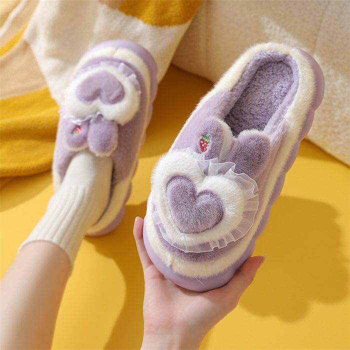 レディース スリッパ 室内履き ルームシューズ 厚底 ウサギ耳付き イチゴ レース ハート かわいい 大きいサイズ 冬スリッパ ルーム 裏起毛 裏ボア もこもこ ふわふわ 秋冬 防寒 履きやすい 滑り止め あったか おしゃれ 冷え防止 防寒対策 保温 無地 シンプル 室内履き