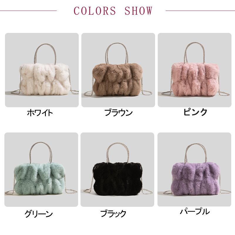 トートバッグ ハンドバッグ ファーバッバッグ レディースバッグ ハンドバッグ 人気saiz: ホワイト ブラウン ピンク グリーン ブラック パープル
