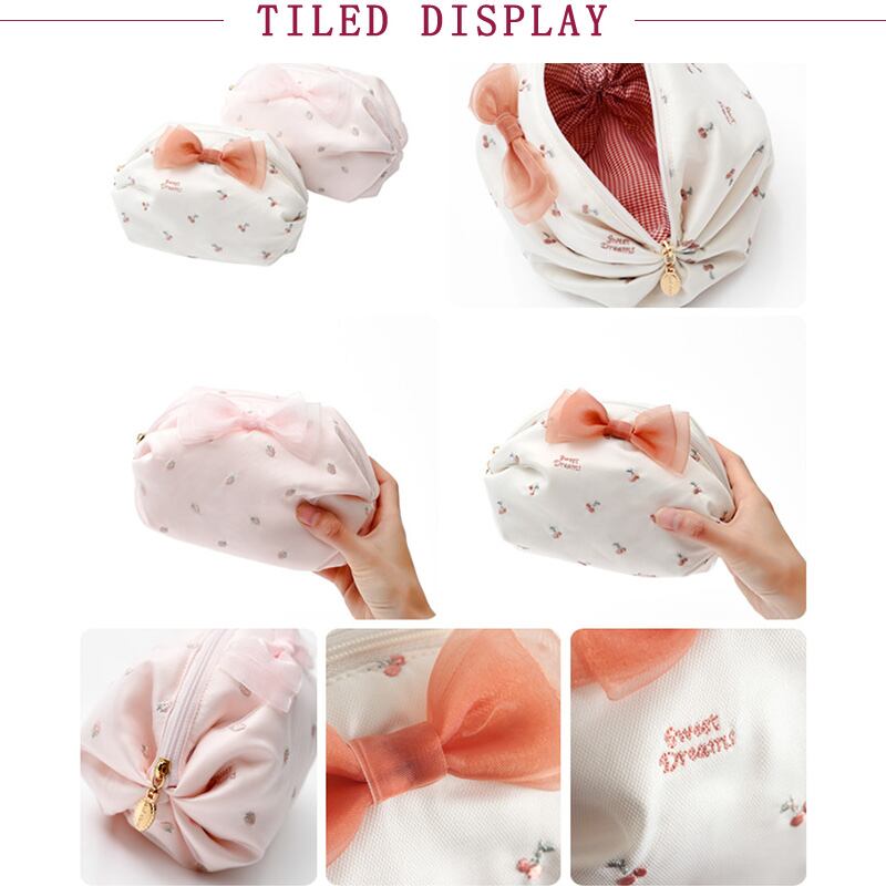 コスメポーチ 化粧ポーチ 大容量 持ち歩き コンパクト レディース ポーチ 刺? 小物入れ コスメ レース チャーム ミニバッグ プレゼント ギフト チェリー いちご ホワイト ピンク 小さめ かわい