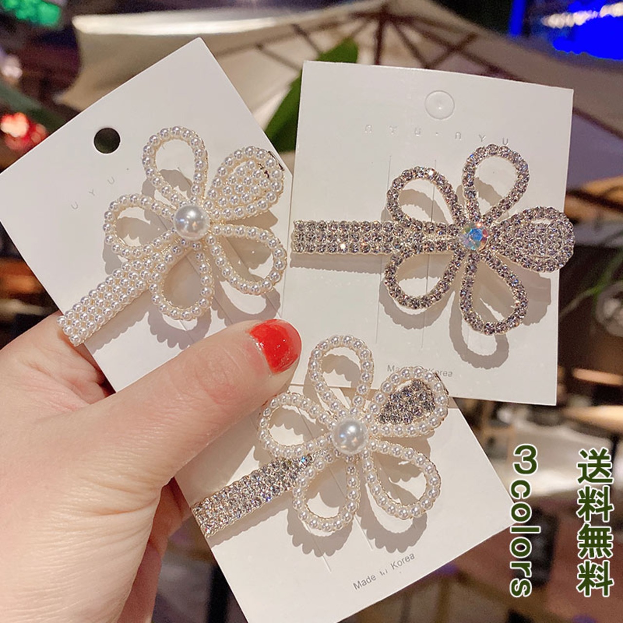 パールやラインストーンを組み合わせた大人可愛いヘアクリップです。普段のおでかけにも使いやすいサイズ感でさりげないオシャレを楽しめます。