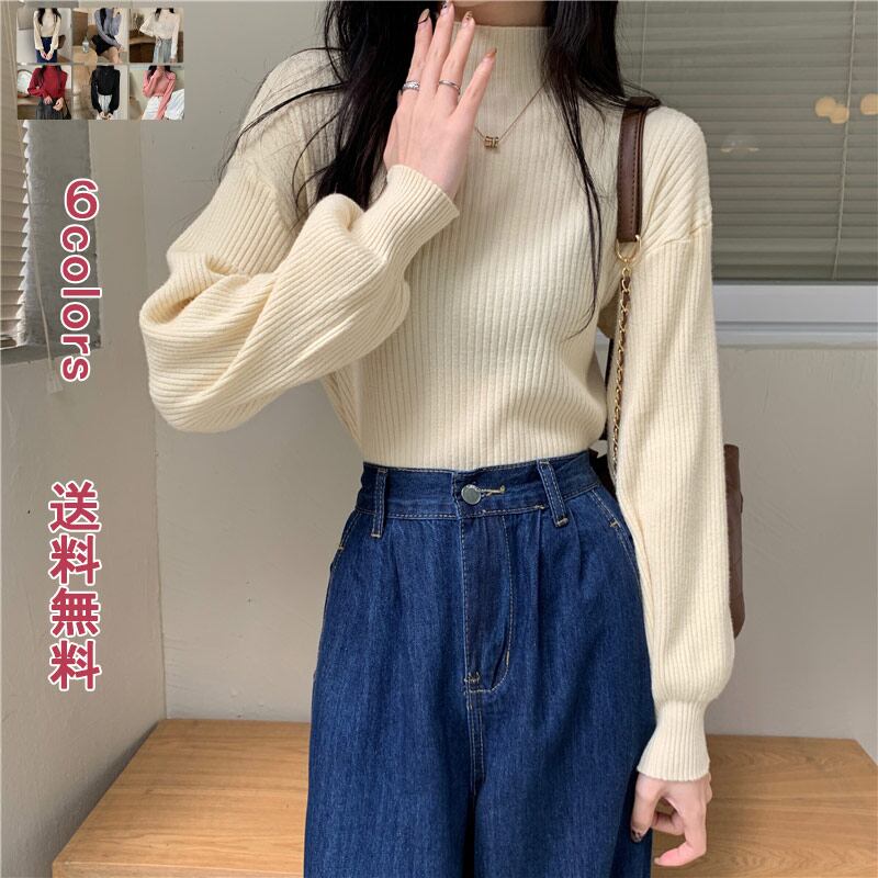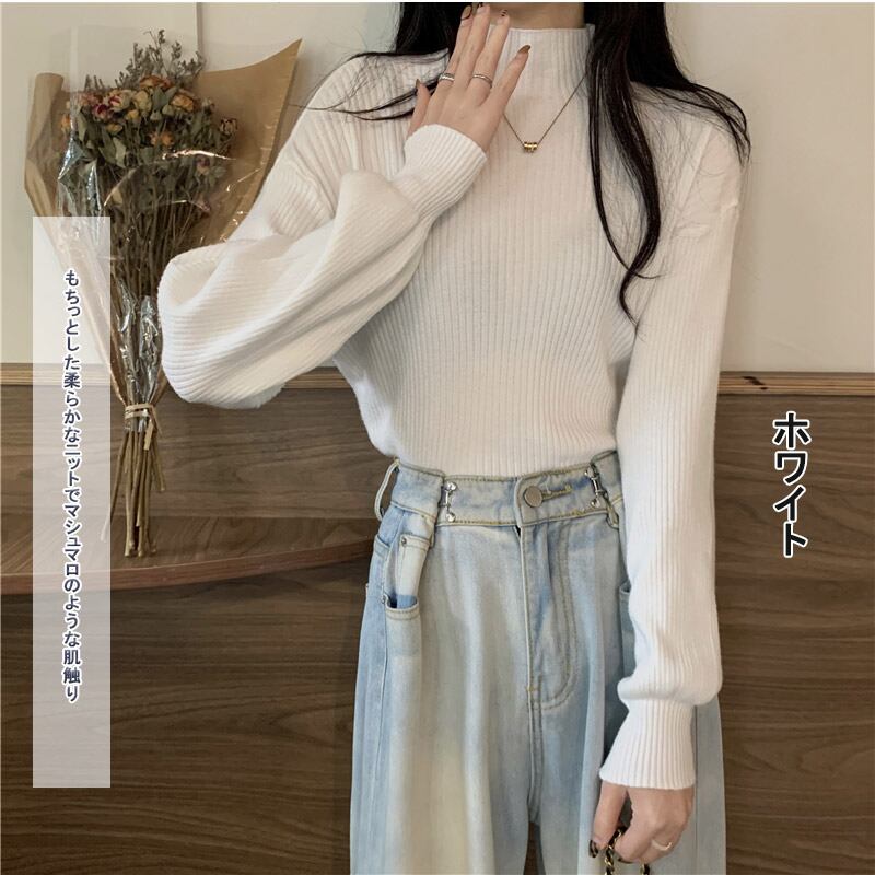 ニットセーター ニット レディース トップス タートルネック ハイネック バブルスリーブ セーター レディース 長袖 カジュアル オフィス シンプル 大人可愛い お洒落 ファッション 厚手 タートルネ
