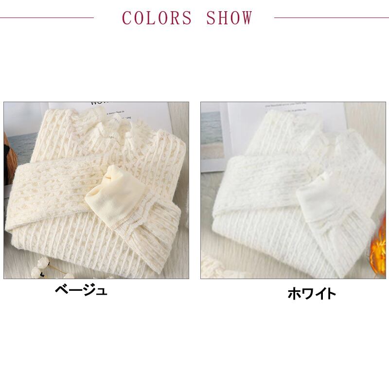 起毛感のあるレースが上品で女性らしい印象を添えてくれるハイネックトップス。