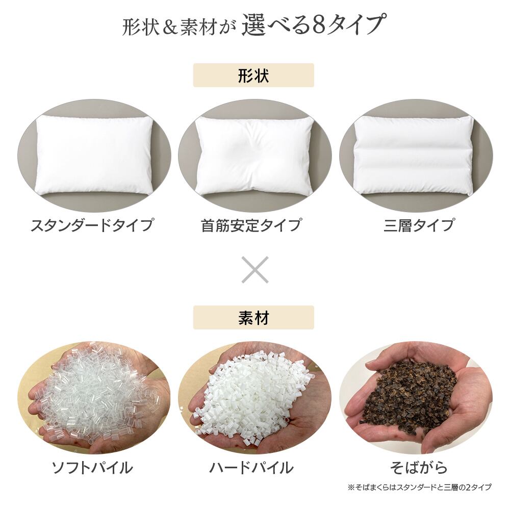 まくら ソフト ハード そばがら 35インテリア 寝具 収納 通販サイズ: ソフトパイプ ハードパイプ そばがら カラー: スタンダードタイプ 首筋安定タイプ 三層タイプ