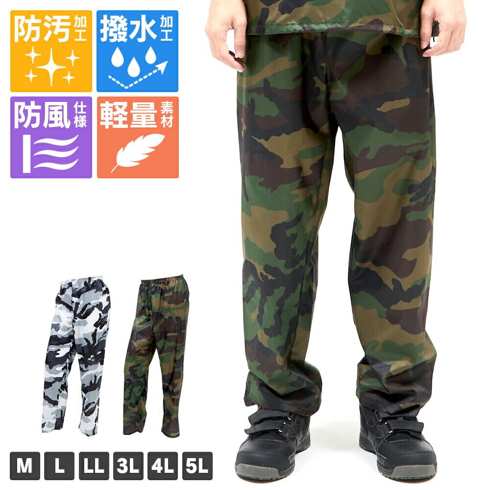 迷彩ヤッケパンツ ヤッケパンツ メンズ 撥水 ズボン ウエストゴム 農作業 作業着 作業服 M L LL 3L 4L 5L 全2色
