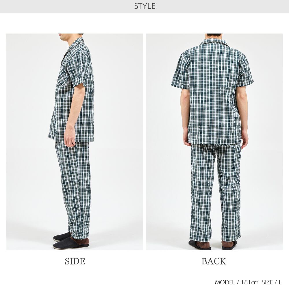 先染サッカー半袖パジャマ ルームウェア パジャマ 上下セット メンズ M L LLインナー 下着 ナイトウェア メンズ ナイトウェア ルームウェア ルームウェア 上下セット