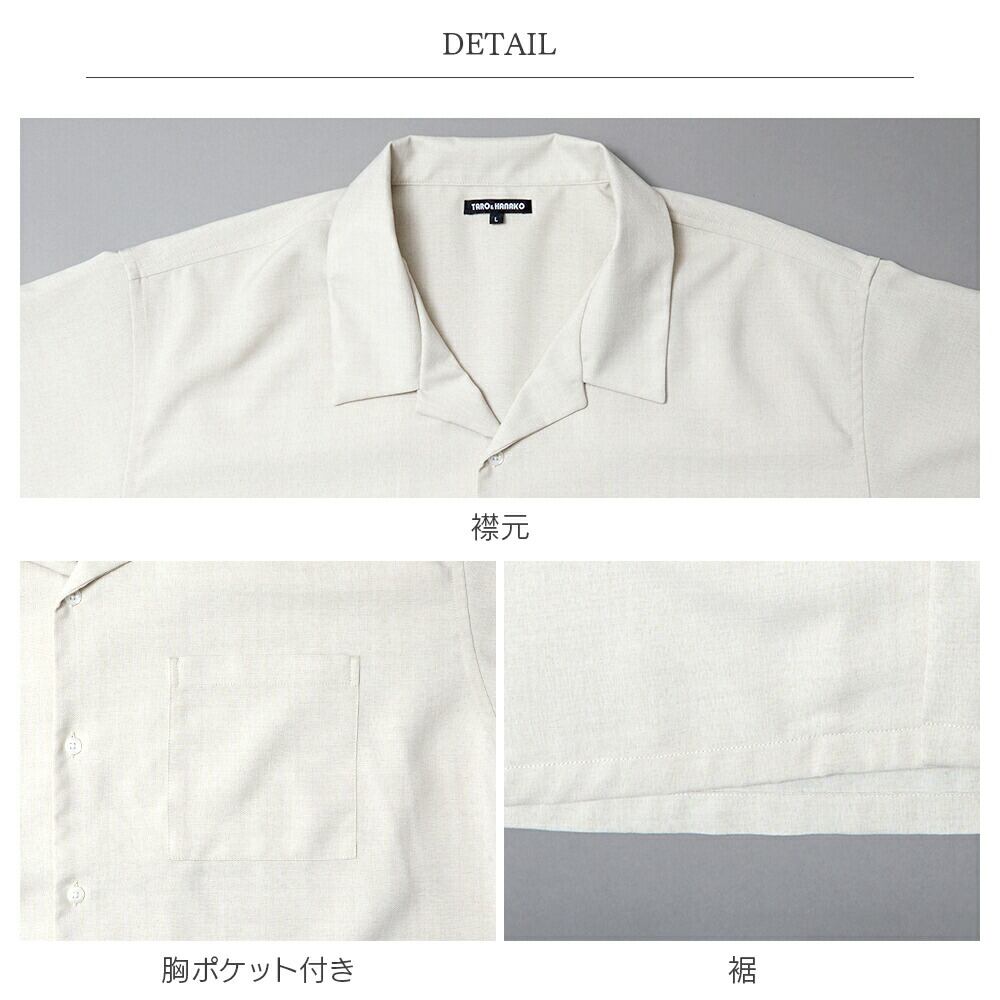 商品カテゴリ:ベージュ カーキ ブラック 黒 無地 カジュアル シャツ 半袖シャツ メンズ オープンカラー 速乾 麻風 半袖 M L LL 3L キレカジ スタンダード 快適 ポリエステル 男性 紳士 春 夏 夏用