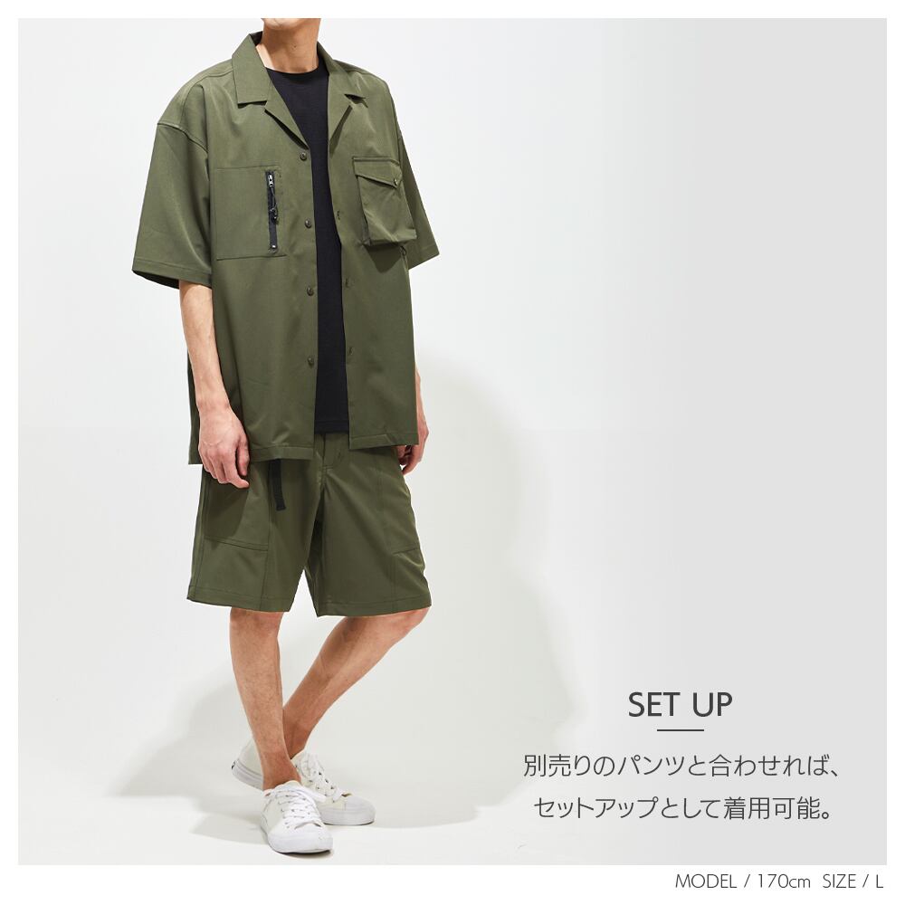 商品カテゴリ:ベージュ カーキ ブラック 黒 無地 カジュアル シャツ 半袖シャツ メンズ オープンカラー 速乾 麻風 半袖 M L LL 3L キレカジ スタンダード 快適 ポリエステル 男性 紳士 春 夏 夏用