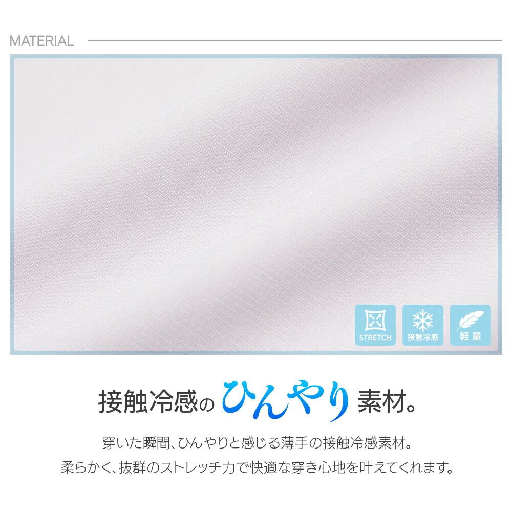 穿いた瞬間、ひんやりと感じる薄手の接触冷感素材。