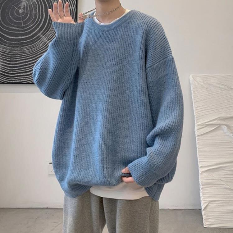 メンズ セーター ニット トップス ビッグシルエット ルーズ あたっか 防寒 ニット 無地 韓国 ファッション