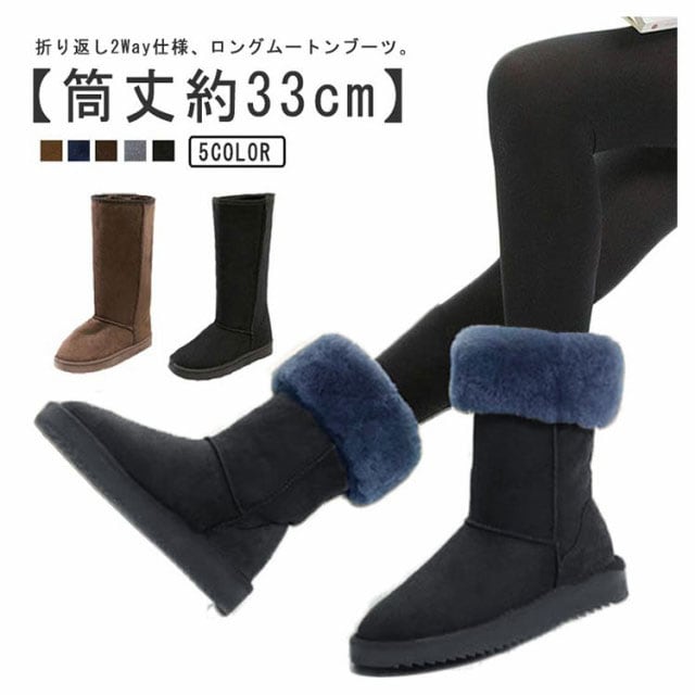 折り返し2Way仕様、ロングムートンブーツ。【筒丈約33cm】