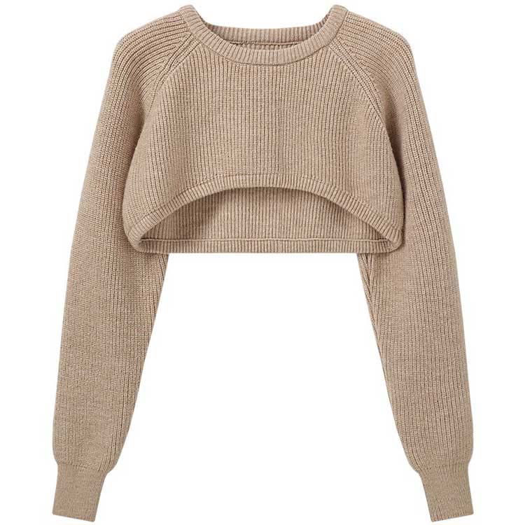 定番のクルーネックニットトップスから短丈バージョンが新登場