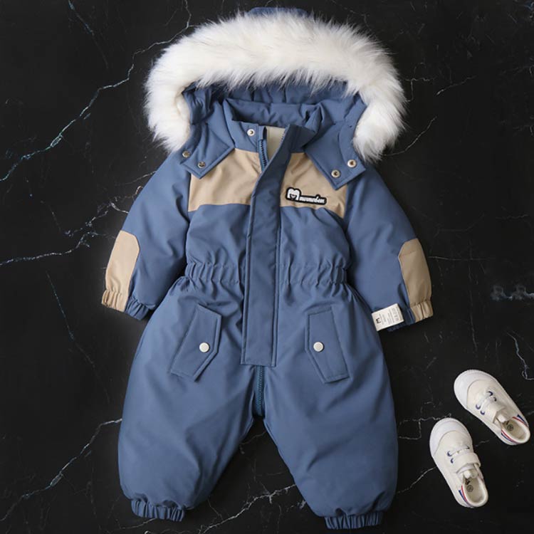 90〜120 雪遊び ジャンプスーツ 防風防寒 ファーフード 暖かい カジュアルキッズ ベビー マタニティ ベビーファッション カバーオール ロンパース